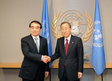 Li Baodong, the Chinese Ambassador to the UN with UN Secretary General Ban Ki-moon (Photo: china-un.org)