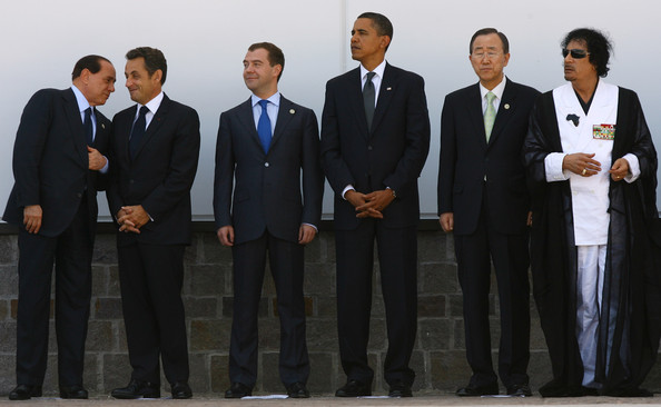Gaddafi with some of his recent economic, political and military partners (Photo: Oli Scarff/Getty Images)