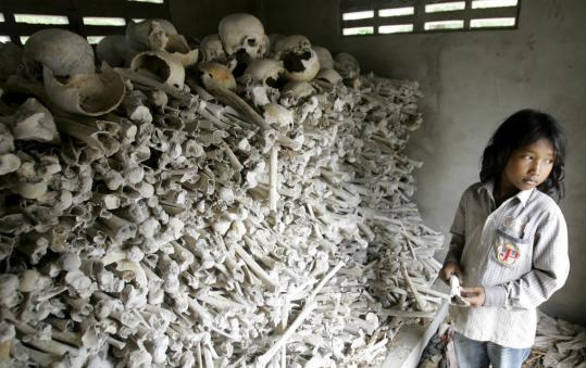 Dealing with the legacy of violent conflicts is full of challenges. The photo shows human bones and skulls of victims of the Khmer Rouge in Cambodia. (Heng Sinith/Associated Press)