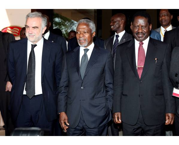 ICC Prosecuto Luis Moreno-Ocampo with former UN Secretary General Kofi Annan (and Kenya's Prime Minister Odinga)