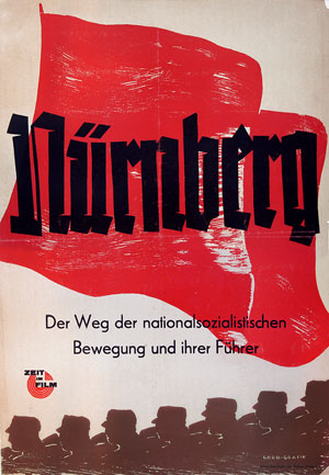The film was intended for German audiences. Yet, while it was still officially entitled “Nuremberg: Its Lessons for Today”, rather remarkably the film’s by-line on German-language posters from 1948 read: “The Path of National Socialism and Your Führer”. Moreover, the poster said nothing nor visually hinted at what the film was actually about – the trial and prosecution of the surviving Nazi leadership. The film’s makers believed that employing this strategy would attract those who had escaped de-Nazification and still supported the Nazis. The audience would subsequently be forced to witness images of the war and genocide, see the surviving Nazi leadership in the dock and, towards the end of the film, hear many key Nazi leaders admit to some of the worst horrors of WWII and the Holocaust. According to Schulberg, it worked.