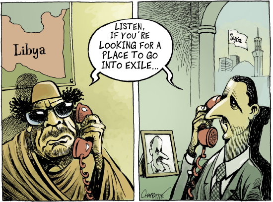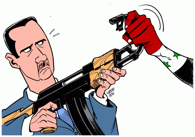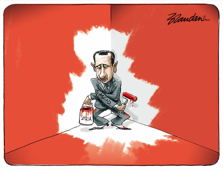 Much as I did in an earlier post on graffiti and transitional justice in Libya, I have selected some of the most striking images of graffiti and cartoons depicting the situation in Syria. Notably, not all of the images are from Syria but they are all nonetheless evocative. They constitute the iconography of a people agitating against their oppressors and for a better life. All offer a unique glimpse into the struggle for justice, human rights and freedom in Syria.
