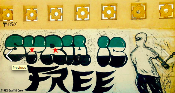 Then there is the story of Nour Hatem Zahra, the 23-year-old protestor, known as “the spray man” who spread messages of dissent through graffiti across Damascus. He was tortured and eventually killed by Syrian security forces. Celebrated by many as a martyr, Zahra’s friends and supporters created a Facebook Page called “Freedom Graffiti Week” in his honour.