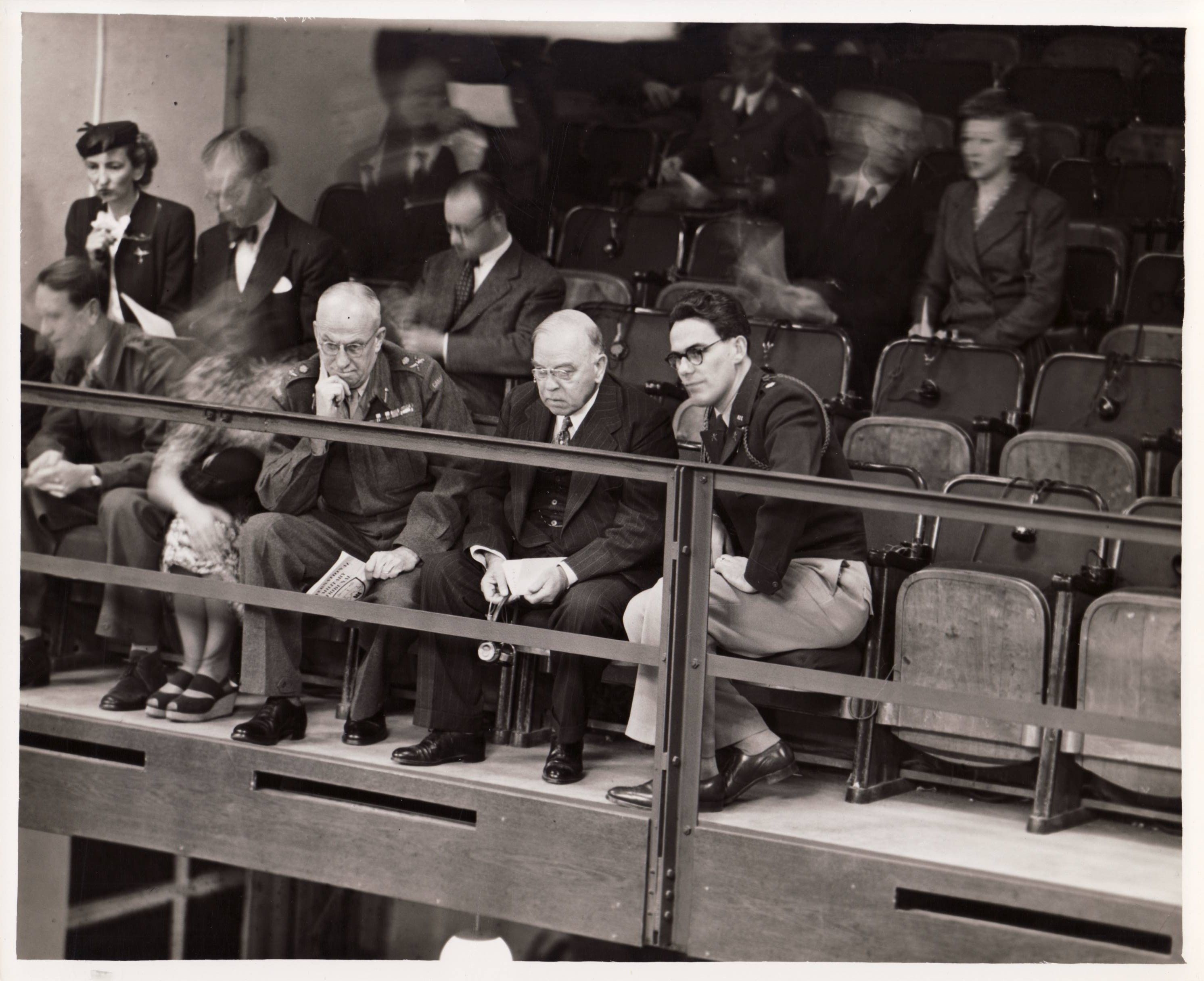As many readers will know (I hope it’s not hard to tell!), I have a keen interest in photography. It is thus a great pleasure for me to share these two rare and stunning photographs of King attending the tribunals. The first depicts King sitting on the visitor’s balcony in the Nuremberg tribunal courtroom. The second photo is of King with two American judges John J. Parker and Francis Biddle.