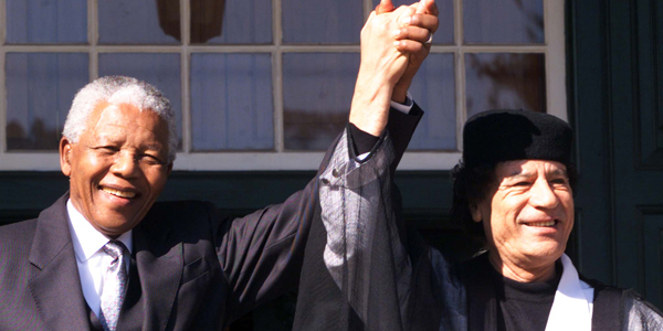In that same year, the two men met. According to a New York Times report of the event, Mandela embraced Gaddafi and defiantly criticized the West for its role in ostracizing the Libyan despot: