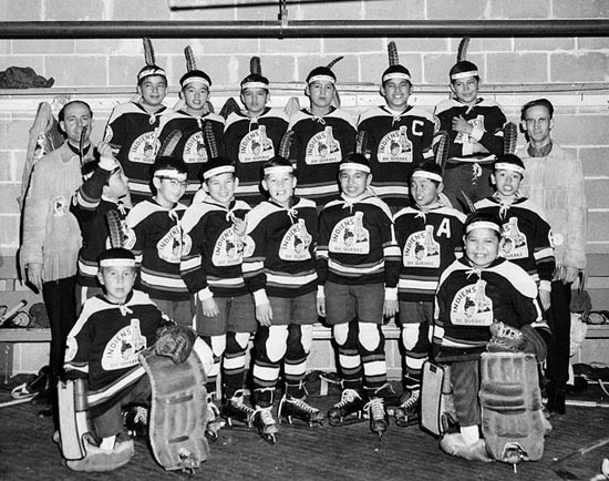 A hockey team from a residential school in Maliotenam, Quebec, in 1950 (Photo: Archives Canada / PA-212964)