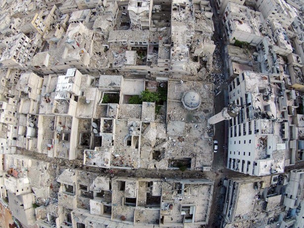 An aerial photo of Aleppo shows damage to the city from ongoing civil war (Photo: Hosam Katan / Reuters)