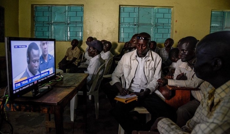 Residents of northern Uganda watch the opening of the trial of Dominic Ongwen, a former commander in the Lord’s Resistance Army (Photo: CICC)