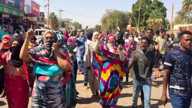 (Sudanese protestors rally against the regime of Omar al-Bashir in 2019. Photo: Sky News)