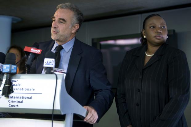 Former ICC Prosecutor Luis Moreno Ocampo speaks at a news conference as Fatou Bensouda, his former Deputy Prosecutor and current ICC Prosecutor watches on (Photo: D+C)