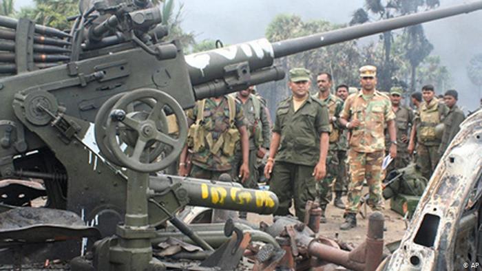 Soldiers from the Sri Lanka army stand next to anti-aircraft gun (Photo: DW)